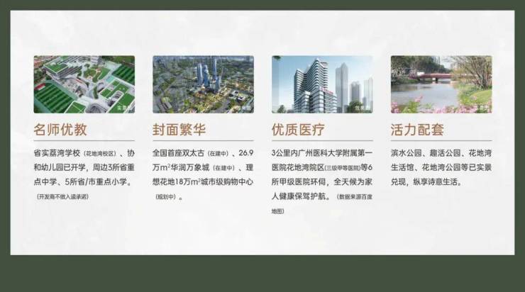 省实荔湾学校(花地湾校区)、协和幼儿园已开学,周边3所省重点中学、5所省/市重点小学。(*开发商不做入读承诺)