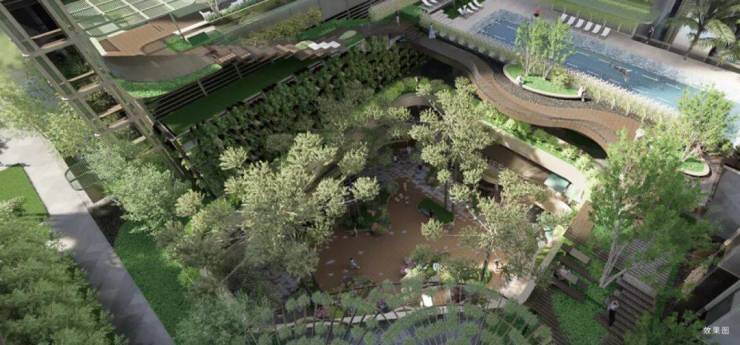 以垂直绿化和创意景观设计,为高层建筑下的空间带来一片生机勃勃的绿洲。