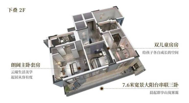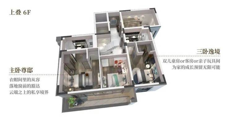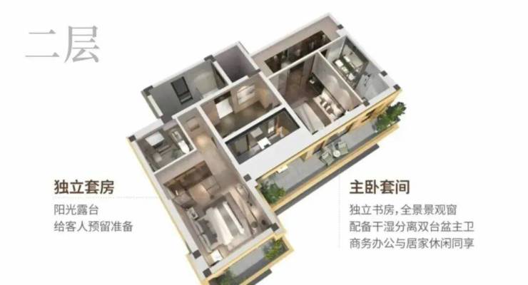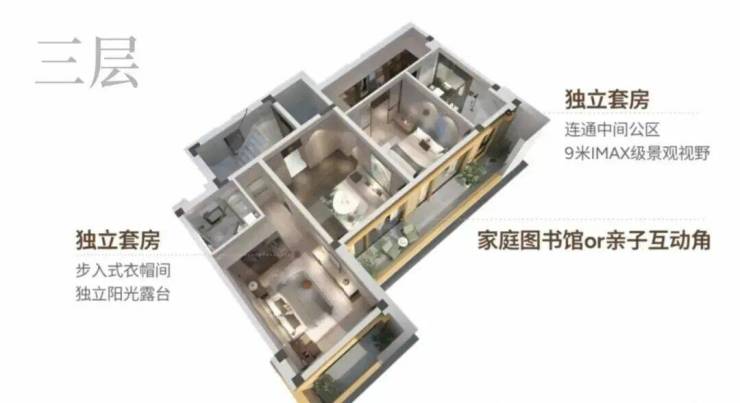 约9米超大面宽,IMAX级风景跃然眼前,买三层享五层,赠送率高达312%,顶配酒店豪华主卧套,全套房设计。