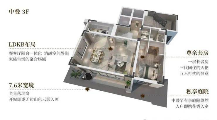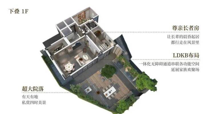 上叠享露台,中、下叠享庭院;户享专属电梯厅,灵动地下空间,多套房配置,高拓空间,朗阔生活从容有度。