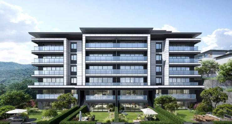 合院产品:以天然花岗岩延续自然地貌,打造特有的山地景观,立面采用多玻璃幕墙、真石漆、仿石材料、上乘铝板、瓦的有序结合,雕琢产品细节 演绎大气优雅格调。