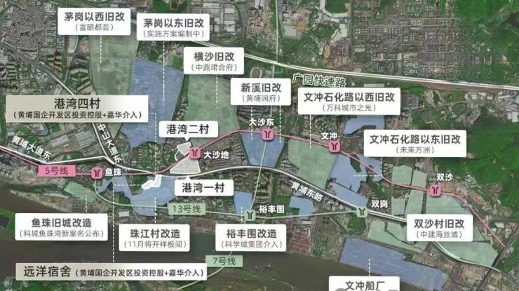 从位置上来看,珠江村位于5号线鱼珠与大沙地之间,是老黄埔旧改中,最靠近天河的项目。