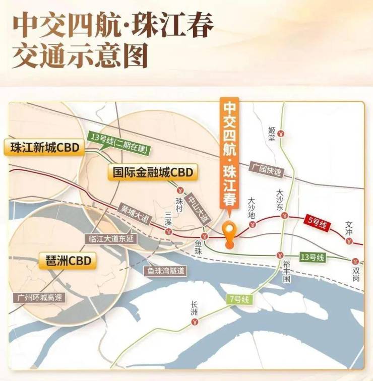 地铁鱼珠站,1站天河,0换乘直达珠江新城,5分钟金融城,20分钟珠江新城,链接珠城和主城区的13号线二期、直通珠城、金融城的临江大道东延段都可能在2025年开通;