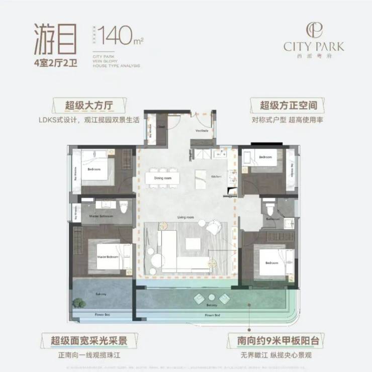 理由一:海珠主城唯一120方南向望江,享稀缺珠江江景景观产品