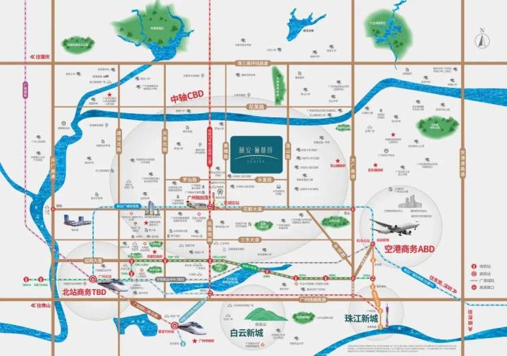 花都中轴CBD、北站新城、空港经济圈将形成黄金三角的聚能效应。