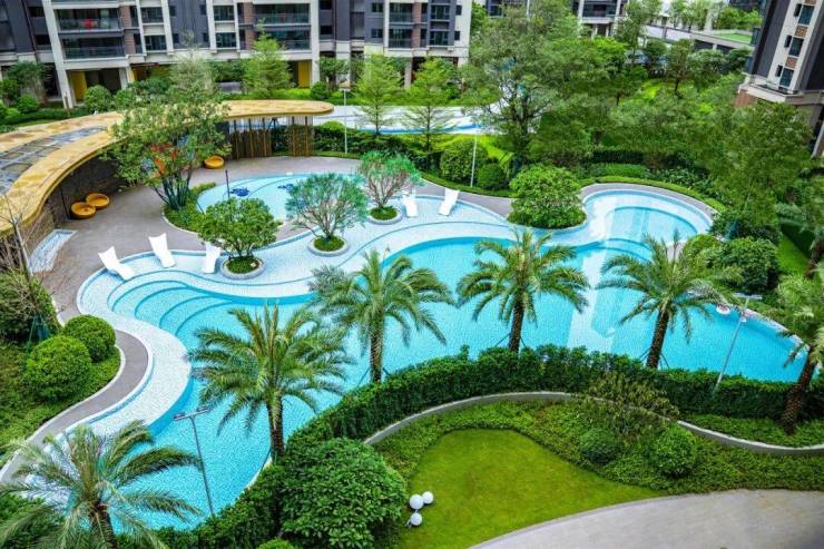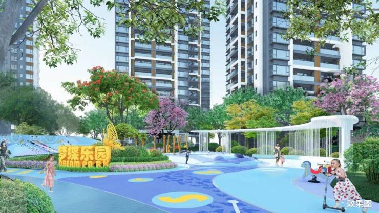 度假泳池、全龄儿童乐园(梦蝶乐园)、健康环跑步道,让运动在家门口进行;