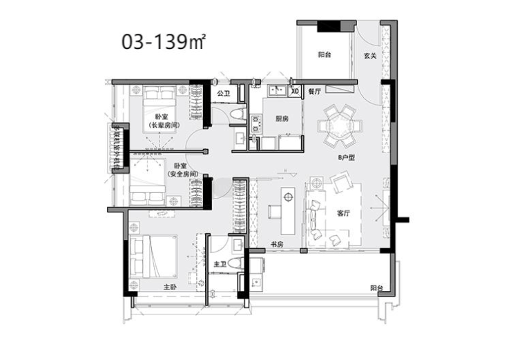 <02/03/05户型-建面约139-142m²四房两卫>