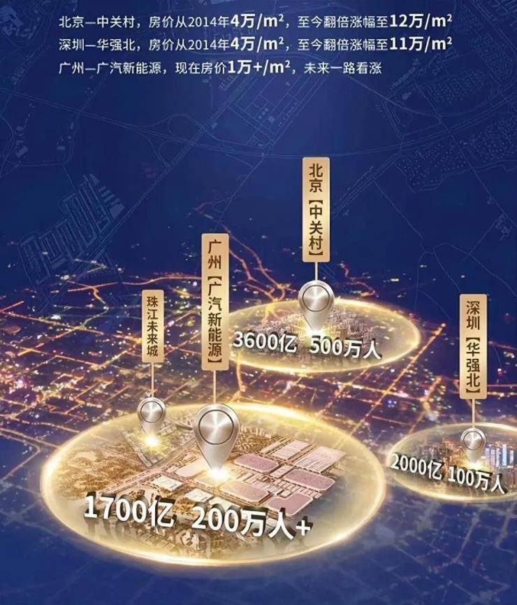 北京—中关村,年交易额3600亿,高新技术企业4000多家,日均客流量500万人次,房价从2014年4万/㎡,至今翻倍涨幅至12万/㎡