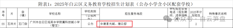 最新消息:教育局通告明确了今年培英中学白云湖数字科技城校区九年一贯制中小学招生范围确定为:招商雍云邸以及中建星光城;