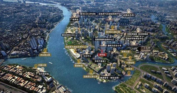 区域配套高端资源加速集聚,白鹅潭万象城(约19万平方米)预计2026年开业,聚龙湾珠江太古里首开区计划2025年底建成,形成重奢商业矩阵。大湾区艺术中心(“三馆合一”项目)已于2025年5月启用,成为省级文化地标。地铁11号线(广州首条大环线)、22号线(时速160公里)等15条轨道线路交织,白鹅潭大道串联三大功能区,强化集聚辐射能力。