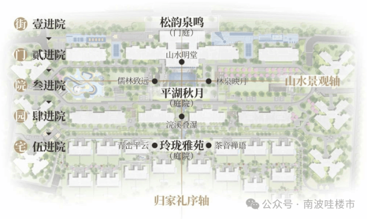▫汲取岭南四大名园精华,布局两轴三庭,五进六园,尽显归家礼序。