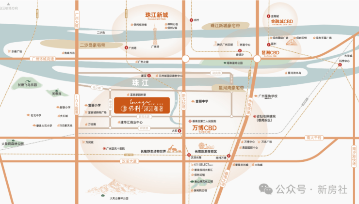 番禺新光快速路西侧项目,是去年9月山西金振德摇号中签,其后与保利联手开发,定名为保利滨江和著,是广州首个“和著”系项目。作为一个大万博的全新盘,保利滨江和著的位置是有优势的。不论到珠江新城、万博CBD、琶洲等各个商务区,都不算远。