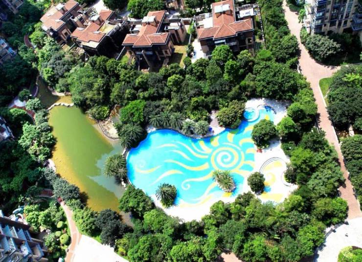 风水讲究以“藏风聚气,山环水抱为吉”,溪山君樾就是一个上乘的风水宝地。外由塘朗山和银湖山两座山峦左右立势,周边还有四大水库环绕聚集;内部布局更是巧妙绝伦,园林入口设置了风水圆环,有风生水起、吸财纳气之意。园林内有活水溪流,有入水为财,聚气八方的寓意;所以溪山君樾从整体来讲,是把外面龙脉的气场和能量借进来,同时通过内部的布局通过水把财气聚集起来。