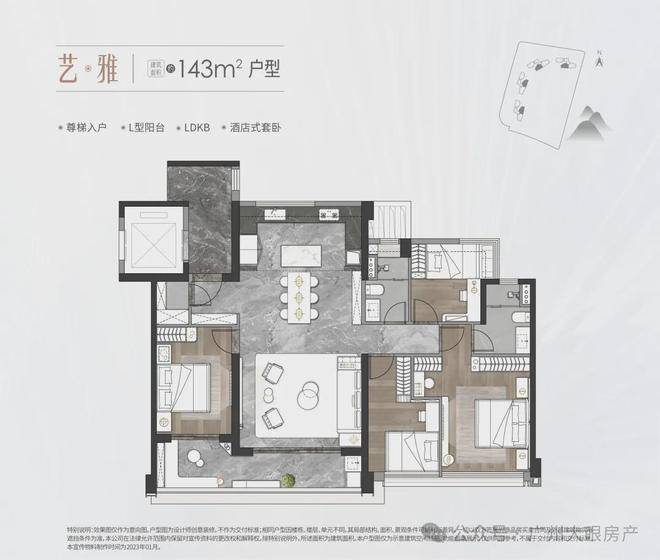 中海麓府体量不大,仅4栋住宅,40多层高的住宅(1#高40层,2-3#高44层,5#高41层),两梯三户,底下规划有1所12班幼儿园+1栋自持物业,货量在500套上下,它的面积段有三种,分别是建面约126㎡三房、143㎡和170㎡的四房