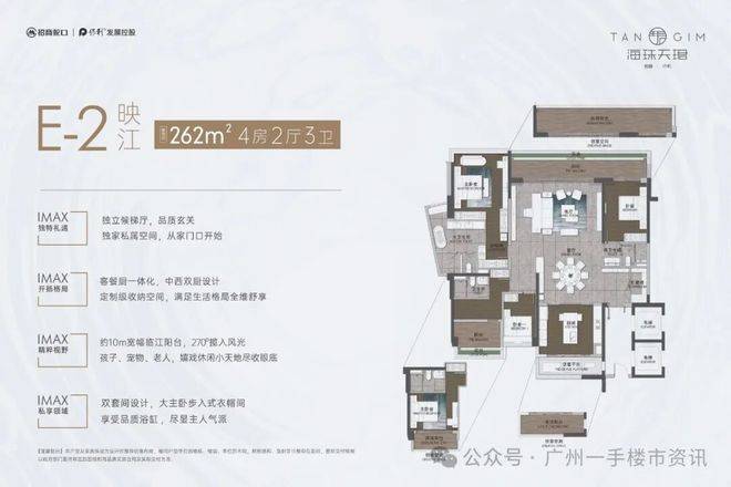 目前海珠天珺的住宅余货已经所剩不多,所剩户型还有盖低区137㎡、140㎡和200㎡四房,以及高区的262㎡江景大平层户型,262㎡户型高层基本都是30楼以上的天际江景视野。
