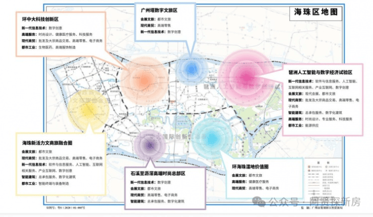 产业目标:近期重点推动琶洲人工智能与数字经济试验区、广州塔数字文旅区产业聚集区建设;中期布局海珠新活力文商旅融合圈、石溪至沥滘高端时尚总部区产业聚集区建设;后期谋划环中大科技创新区、环海珠湿地价值圈产业聚集区建设。