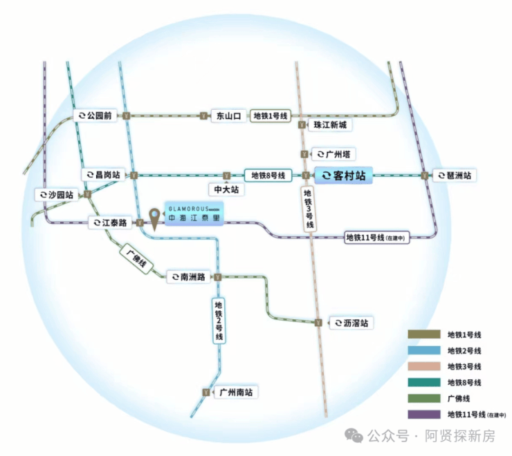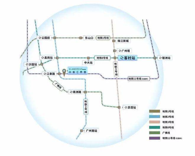 地铁:3站中大6站琶洲6站珠江新城;2号线与11号线(在建中)交汇江泰路站;距江泰路B1出口仅150M,下楼即享便捷生活;迅达番禺、白云、越秀、天河、荔湾;
