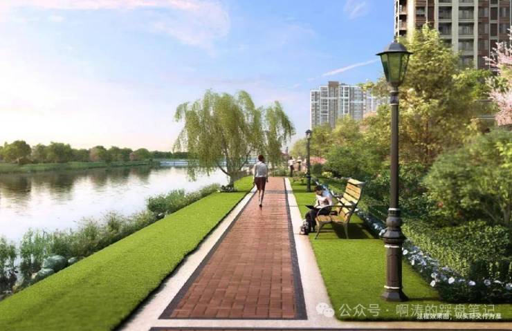 滨水公园:沿河打造约1.6km滨水漫步公园(在建中)、体育运动公园等自然公共空间,营造运动、娱乐、休闲等松弛感生活聚场。