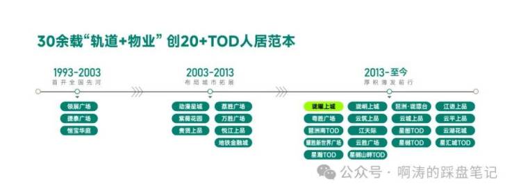 广州地铁地产:隶属广州地铁集团,自1993年开始,践行“轨道+物业+产业+生活”的TOD综合开发模式,以“百年地铁工程”标准建房子,创著了20+TOD个人居范本,90个TOD综合开发项目。