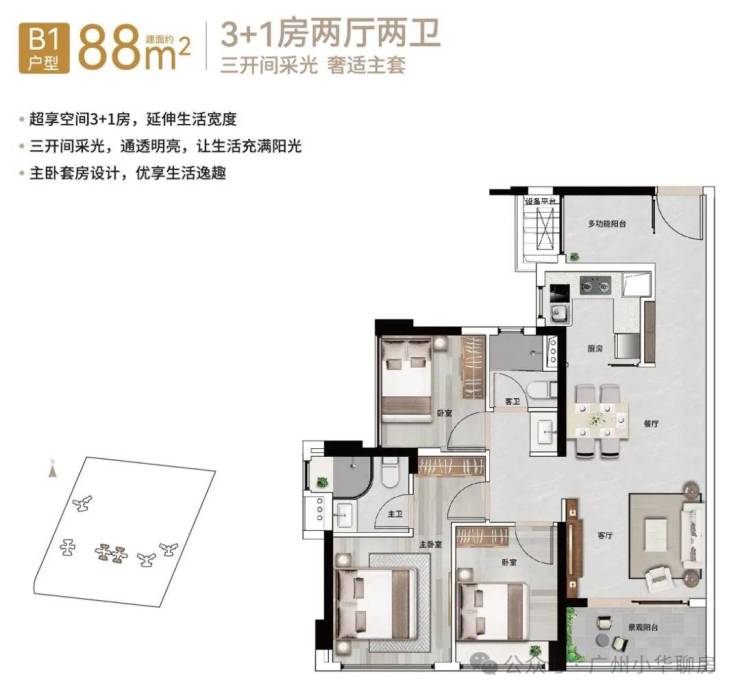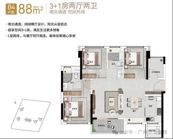 ❗88㎡3+1房2厅2卫(横厅)❗💎同等面积多一房,稀缺小户型💎低总价晋阶天河———————————————【88㎡3+1房2厅2卫(带主套)阔绰横厅格局,南北通透稀缺小户型,低总价晋阶天河(此价格未能实时更新,以现场实际可售房源价格为准)