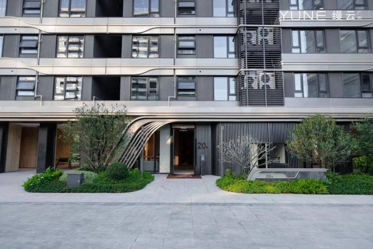 项目以 14 栋 12 层小高层住宅,营造低密度、高隐私居住环境。公建化立面设计,全景式系统玻璃门窗、铝板和陶板幕墙系统,尽显现代高端品质。创新引入恒适系统,以仿生学为理念,水为能量载体,营造全年恒温舒适环境。