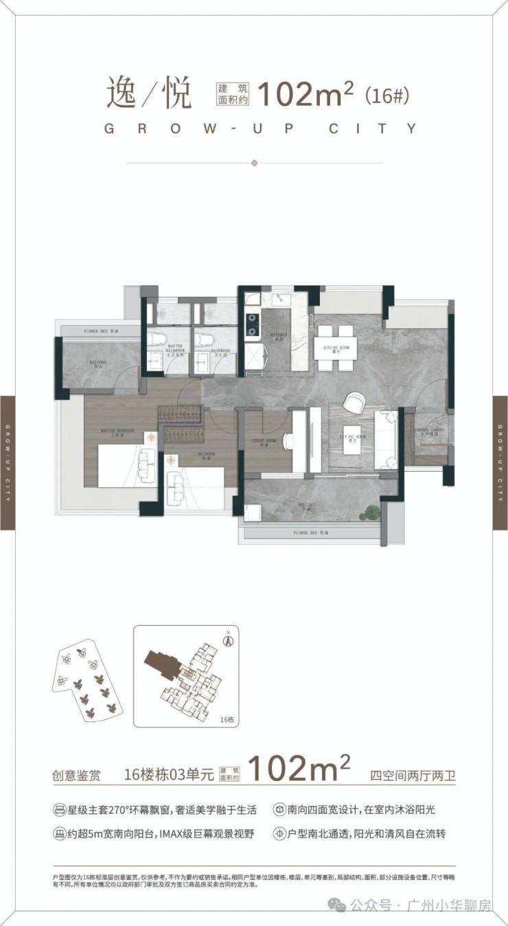 深呼吸式楼型、全户型主套带衣帽间、预留强收纳空间