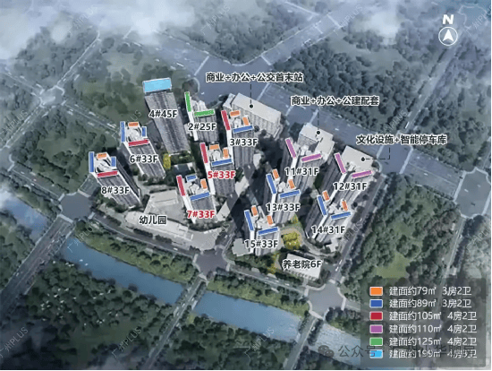 社区内全时全龄多元化社区配套:6大内部优居配套(约3600㎡15班幼儿园、约4400㎡颐养中心、主题底商、公交首末站、约1000㎡农贸市场、约1200㎡文化活动中心),3万㎡现代风格园林、儿童乐园、泳池和多主题泛会所,是一个可以满足多元化都会生活的大社区。
