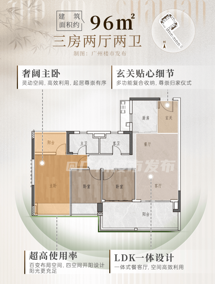 一来,对比片区同面积二手(使用率普遍70-85%),项目使用空间更大,满足买家向上置换的体验。