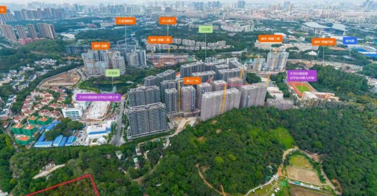 项目自身配建6班幼儿园,中小学由天河外国语智谷学校(已开学)统筹解决