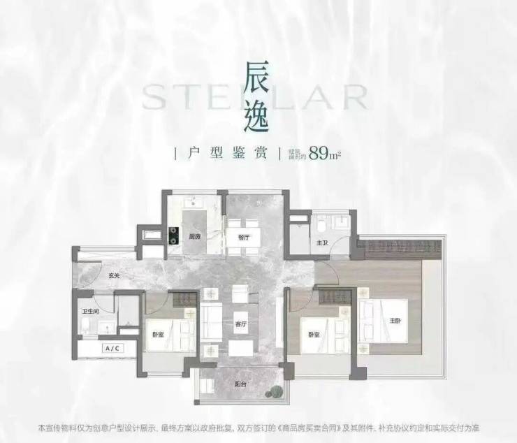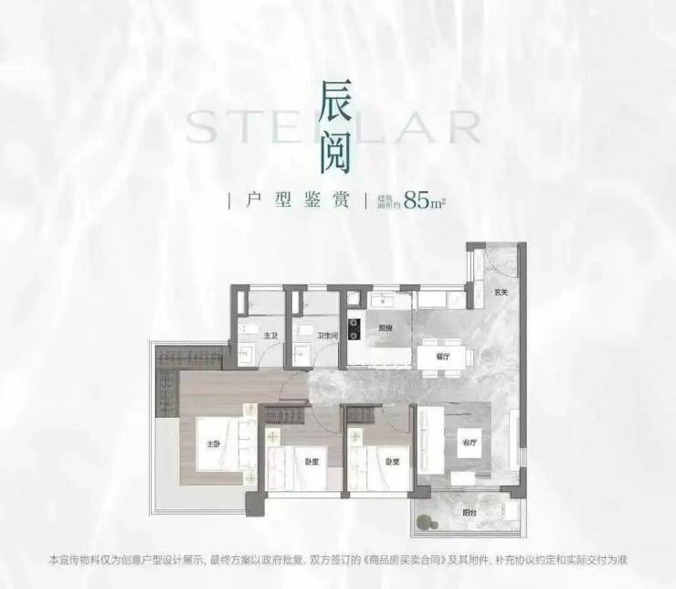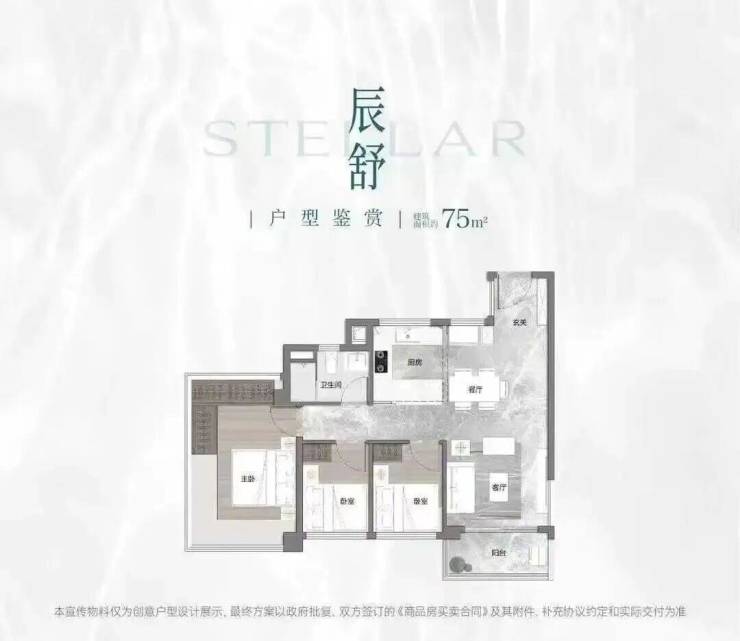 项目首推户型为建面约73-88㎡三房,住宅全南向布局,板楼可南向一线望映辰湖。