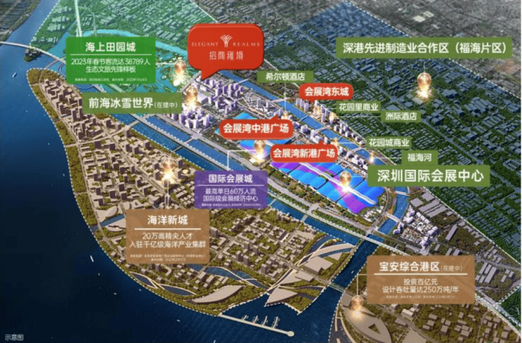 项目坐落于深圳前海扩容的前沿阵地、深港融合发展圈,这里是深圳未来发展的新增长极。深圳国际会展中心、前海华发冰雪世界(建设中)、海洋新城(建设中)等重点配套项目,将以“会展+文旅+海洋”经济引擎,进一步驱动区域跃升。