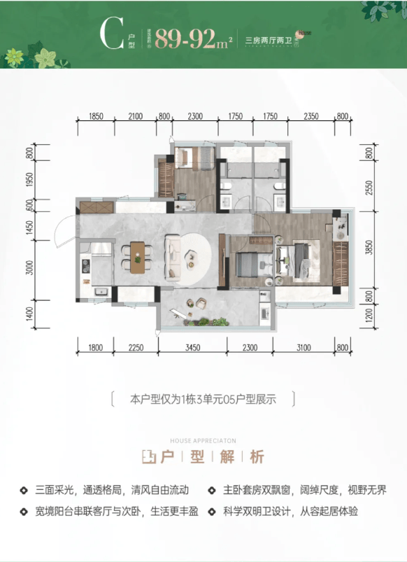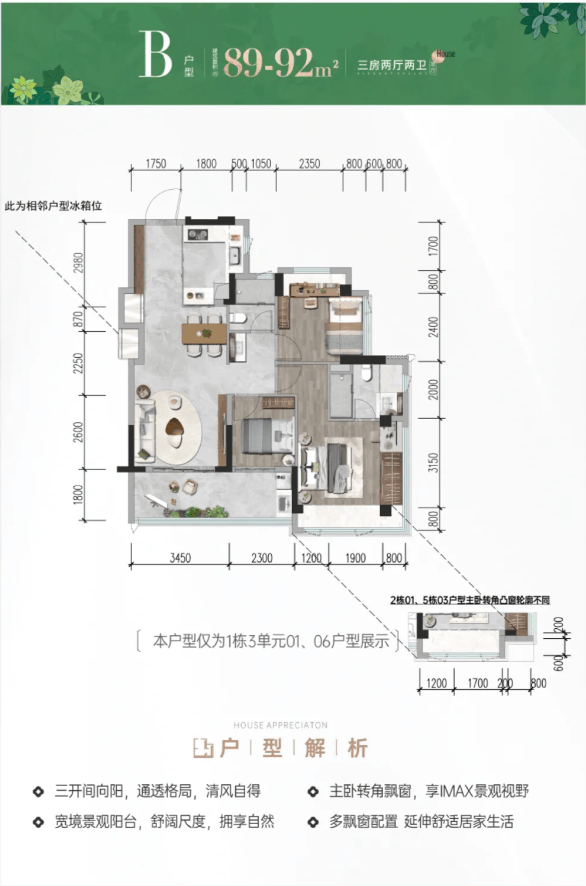 作为招商蛇口深圳公司首代、前海会展片区首个超级新规作品,项目建面约78-117㎡三至四房户型,拓展后实际使用率高达96%-105%,兼顾实用、宽敞、阳光与精致。