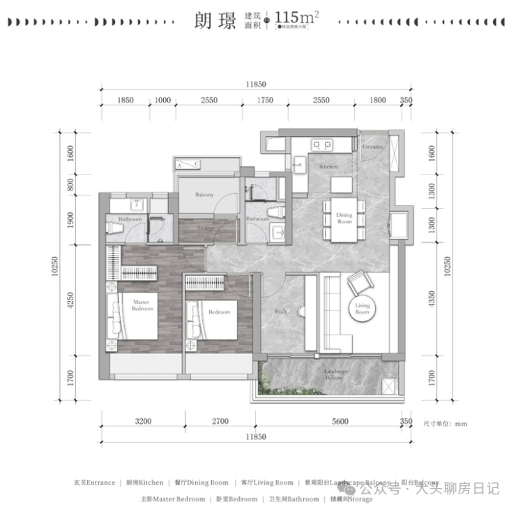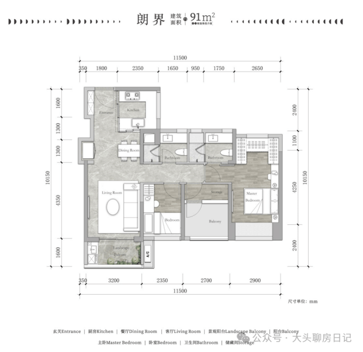 >> 建面约115㎡2房2厅2卫+2灵动空间 <<