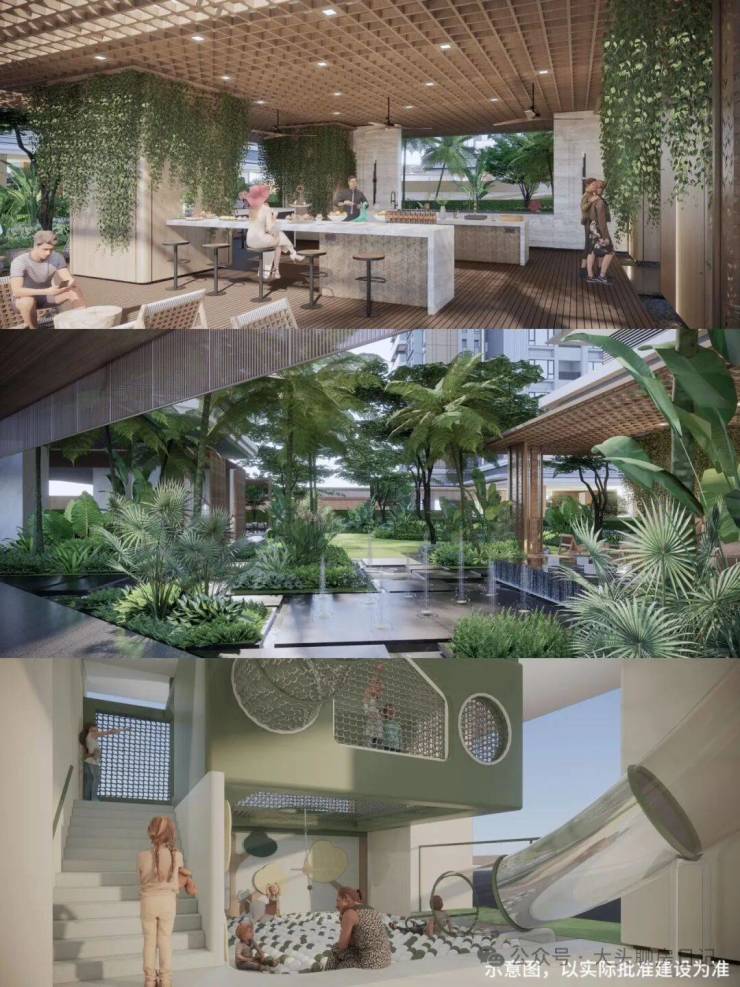 打造“可停留、能参与、会互动”社区空间,3大生态景观(阳光草坪+亲水乐园+林间庭院)+5大架空空间(童梦乐园+格物天地+研习书屋+能量剧场+社区会客厅)激发更高频且多元的邻里场景,让陪伴随时随地发生。