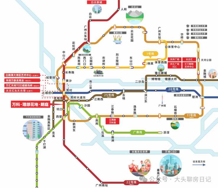 15条城市、城际轨道(规划中)汇聚,3地铁6线交汇(规划中)无缝链接大湾区,500米内1号线花地湾站,无需换乘,直达越秀天河