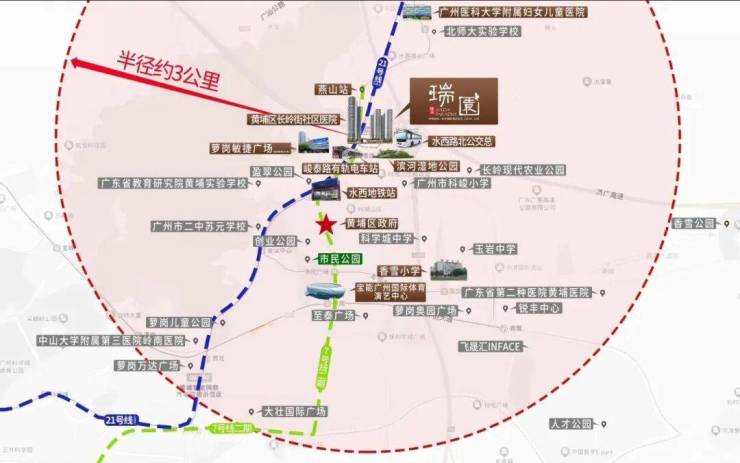 中山大学附属第三医院岭南医院距离项目约3公里,广州医科大学附属妇女儿童医院,还有广东省第二中医院黄埔医院,驾车距离约 5.7 公里。