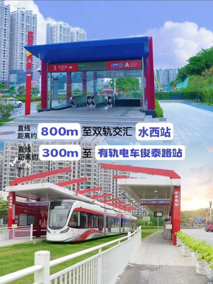项目距离地铁7号线二期与21号线的交汇站点水西站直线约800米,3站即可直达天河;直线300米即达有轨电车1号线峻泰路站,3站接驳地铁6号线香雪站。自驾项目紧挨萝岗高速出入口,出门即可接驳广佛肇高速,快速通达市区。