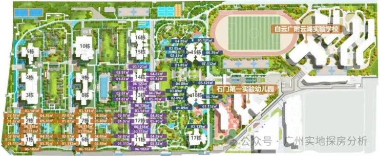 2、教育资源优质:小区内配建18班石门第一实验幼儿园和36班白云广附云湖实验学校,九年一贯制教育,师资雄厚,家长接送便利。