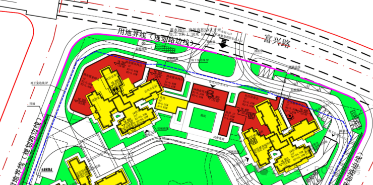 小区采用了围合式的布局,做到户户朝南,东南角有配建的9班幼儿园;