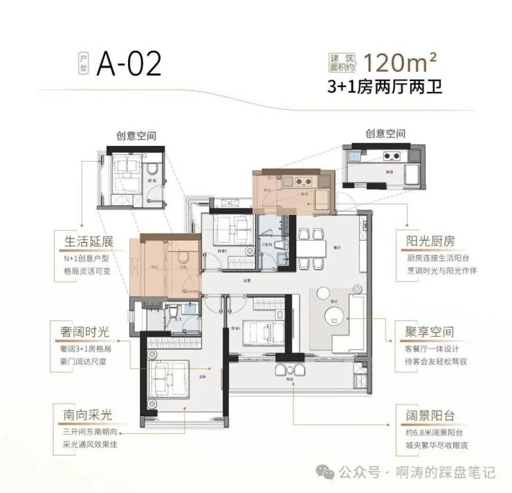A-02 建筑面积约120㎡ 3+1房两厅两卫