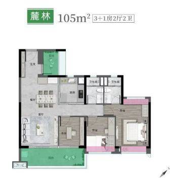 105㎡3+1房两卫:改善家庭首选!全南向四开间,近12米的采光面让客厅和卧室都亮堂堂的。约6米的南向大阳台正对着山景,推窗就是连绵的青山,270°IMAX山景环绕,喝茶观景的惬意感直接拉满。“3+1”的灵动空间设计,多余的一间房可以做书房、儿童游乐区,或者改成长辈房,满足家庭不同阶段的需求,实用性超强。