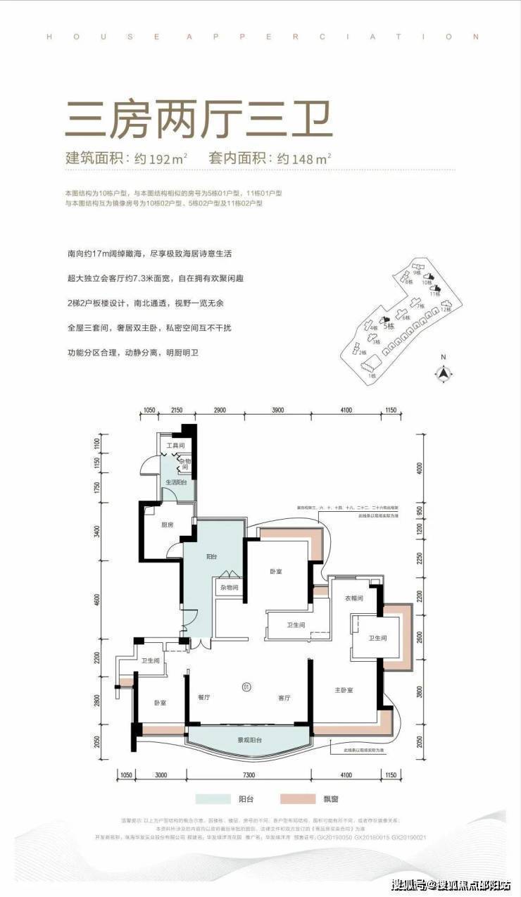 在售面积: 1栋 59-63㎡ 、6-7栋230-300㎡ 、10-11栋192㎡