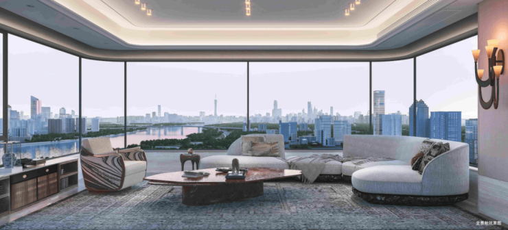双U型全景舱:主卧及客厅采用270°环幕视野,三面采光(对标深圳16万/㎡顶豪深湾玖序),空间利用率极致。