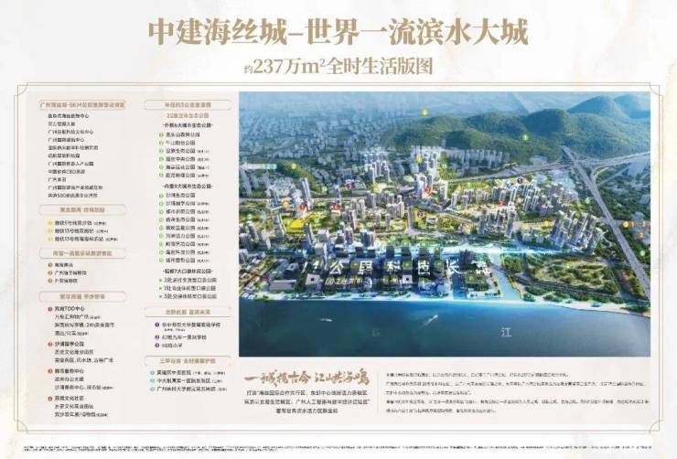 ◎中建海丝城:由国际设计规划单位AECOM与华阳国际联手打造,建设集总部办公、高端公寓、商业服务、文化体验、高端居住五大功能于一体的世界一流滨水大城。