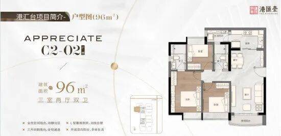 二期是商业、住宅、写字楼综合体,港汇台正是其中的住宅区,分C1、C2两栋,主推69-144㎡二房至四房,体量小,共162套。