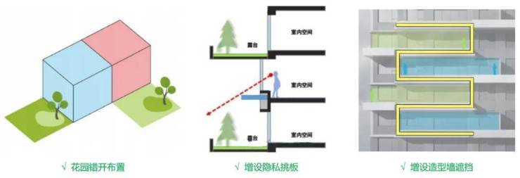 国瑞·浩月府采用结构挑板、优化开窗位置及错挑花园变换客厅采光方向等手法,避免与相邻户型的视线干扰,形成完全私密的空中绿化庭院。