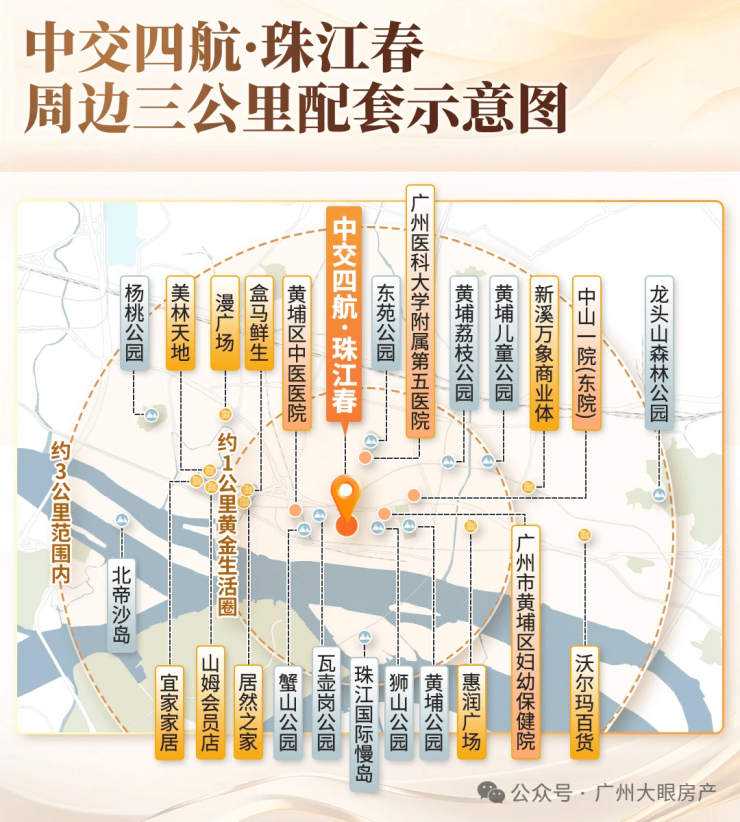 一步之遥老黄埔成熟生活圈,紧邻鱼珠港100万㎡顶级旗舰商圈汇集;五星级酒店、美林M·LIVE天地、山姆会员店、宜家家居、居然之家、盒马鲜生等,娱乐住宿消费应有尽有。30分钟即享珠江新城商圈,天河城-太古汇商圈世界级商圈奢华配套。