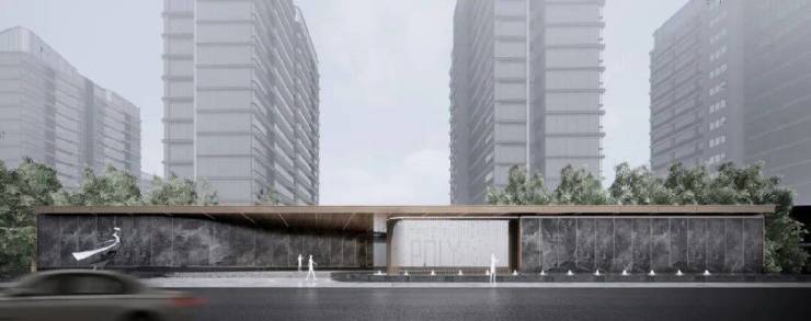 70M超宽界面,艺术门厅结合大水景、黑山石和罗汉松,打造礼仪式归家落客界面。