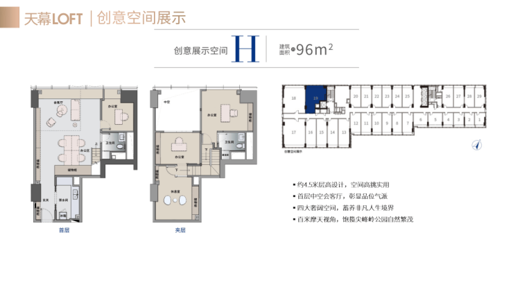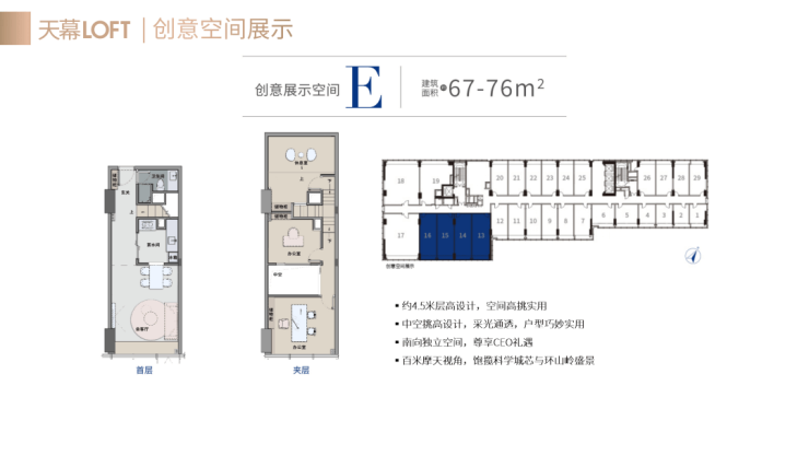 超百米天际高度,南瞰科学城繁华万象,北拥尖峰岭静谧绿意;全玻璃幕墙,勾勒简约现代轮廓;约32-150㎡(主力32-50㎡)多样户型选择,自住舒适,办公高效,4.5 米层高,上下灵动分区,户型方正,采光通透。