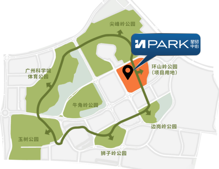 自驾——毗邻广州黄埔开创大道、科学大道、开泰大道三大主干道,对接广深高速、广州二环高速等,通达全城;